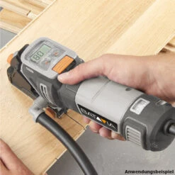 Durch diese handliche Präzisions-Säge mit 500 Watt kannst du gezielte Schnitte durch Parkett- oder Laminatverlegung, Linoleum, Kunststoff, Fliesen oder Nichteisenmetall setzen. Die Handsäge besitzt eine Schnitttiefe von 0 bis 12 mm. Die digitale Drehzahlregelung ermöglicht ein kontrolliertes Sägen. Um Motorbrände vorzubeugen, schaltet sich diese selbstständig ab, bevor sie überlastet. Dennoch ist die Handkreissäge nicht kaputt, nach kurzer Abkühlzeit kannst du sie wiedereinsetzen. Im Lieferumfang ist ein Adapter für die Staubabsaugung und drei verschiedene Sägeblätter, die du durch die Spindelarretierung leicht wechseln kannst, enthalten.