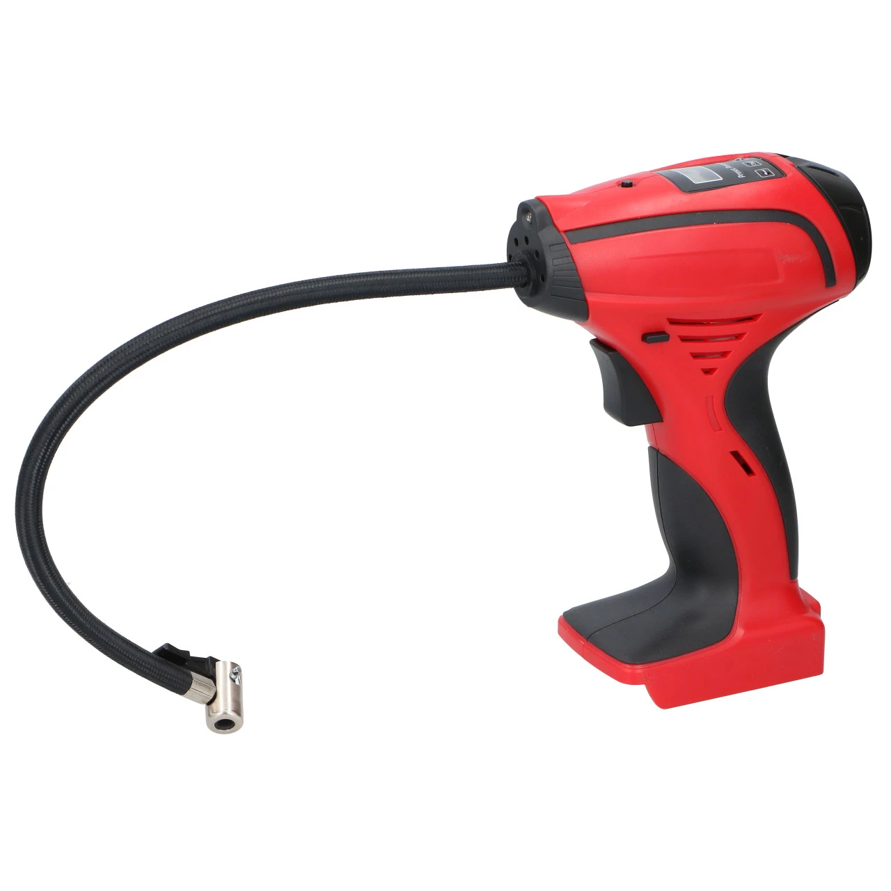 Über die digitale LCD-Anzeige ist der Luftdruck vorab einstellbar und dank der Autostoppfunktion stoppt das Gerät beim Auffüllen automatisch, sobald der gewünschte Druck erreicht ist. Zusätzlich sorgt die LED-Lampe für eine klare Sicht, auch in dunklen Umgebungen. Darüber hinaus ist der Kompressor mit einem Entriegelungsknopf ausgestattet, um versehentliches Einschalten zu vermeiden.