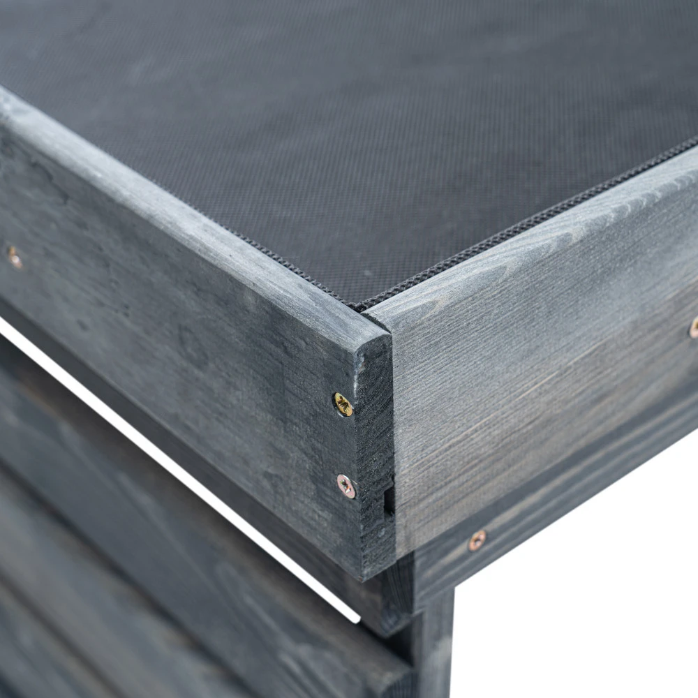 - aus stabilem Holz in Grau