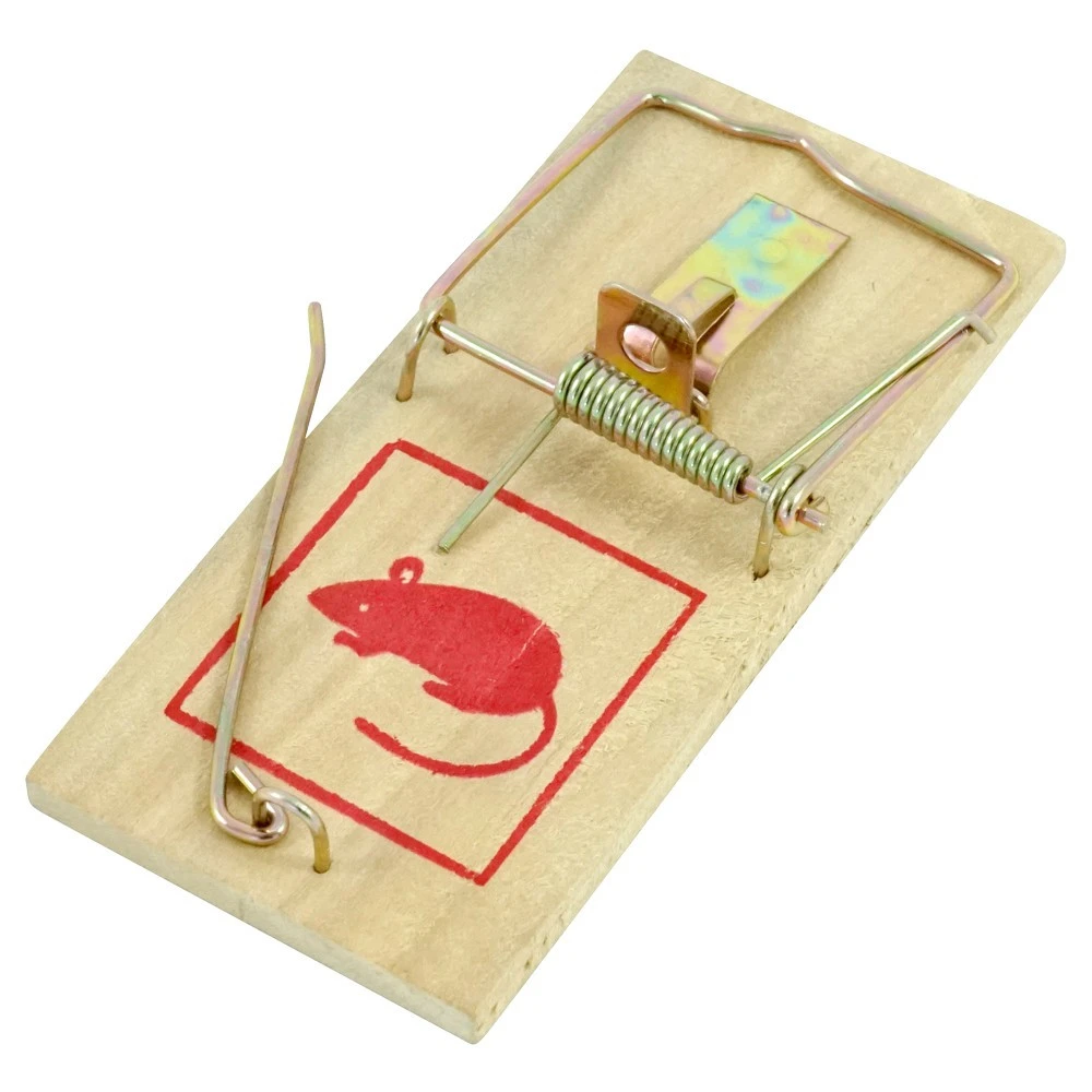 Hochwertige Mausefalle aus Holz zur Verwendung mit klassischen Ködern wie Käse, Speck, Schokolade oder Brot.