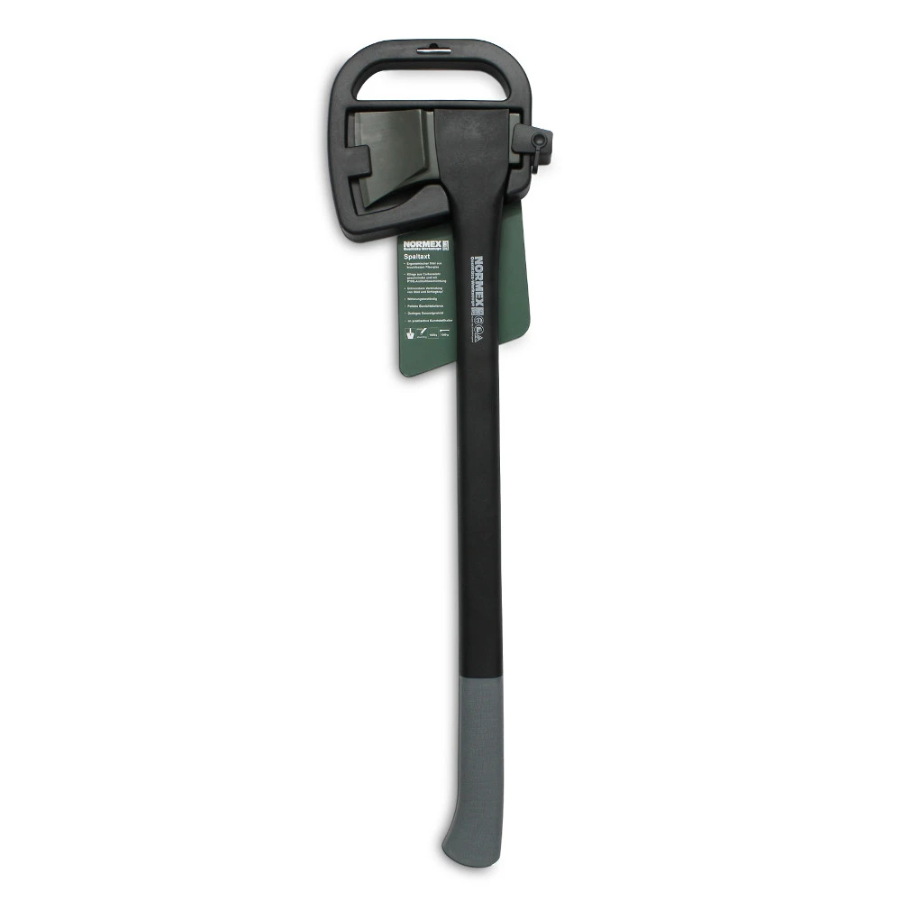 Mit dieser hochwertigen Holzaxt von Normex spalten Sie jeden Stamm. Forstwerkzeuge wie diese Axt stellen besondere Ansprüche an die Qualität der Materialien und die Verarbeitung. Eine Axt mit Fiberglasstil und in handlicher Form für effektives Arbeiten. Die scharfe Carbonstahlklinge mit Teflonbeschichtung hat einen optimalen Antihafteffekt und eine erhöhte Witterungsbeständigkeit. Die Klinge ist im Stiel festsitzend eingearbeitet. Der Stiel ist aus extrem robustem und witterungsbeständigem Fiberglas gefertigt. Der innen hohl konstruierte Stiel absorbiert Vibrationen und garantiert einen rückschlagarmen Einsatz. Die Axt hat ein geringes Gesamtgewicht und eine optimale Balance. (Kopfgewicht: 1000 g / Gesamtgewicht: 1600 g, Länge ca. 710 mm) Die Lieferung erfolgt im praktischen Kunststoffhalter.